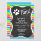 Vous allez adorer ce mignon chien "woof" empreinte de patte & Neon Stripes; Orange Pink Blue Green motif design! Nous vous avons invitation à notre magasin, PetWorld, pour voir ce motif cool sur beaucoup plus de grands produits personnalisables pour animaux domestiques, y compris des cartes d'anniversaire pour les filles, des invitations pour les enfants modernes et des invitations pour les fêtes pour enfants de carte postale branchées!