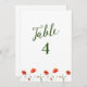Le numéro de tableau moderne et minimaliste du mariage floral est doté d'une bordure inférieure de pavot aquarelle avec du texte personnalisable (illustré dans l'encre verte de forêt, qui peut être modifiée).