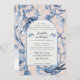 Invitation Chinoiserie Floral Blanc Bleu n Oiseaux roses Mari