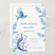 Avec grâce et raffinement, notre Elegant Blue Chinoiserie Wedding Save the Date présente un beau paon, des oiseaux délicats et des fleurs douces dans les tons bleus classiques. Parfait pour des célébrations formelles intemporelles. Entièrement personnalisable.