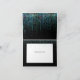 RSVP Moderne Abstrait - Une cascade de guirlande de teal pailleté audacieuse et moderne descend sur la page, avec une calligraphie manuscrite « faites-le nous savoir » - les initiales du couple en haut - le reste du texte est simple et épuré - le tout sur un fond noir. Papeterie de mariage élégante.