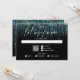 RSVP Moderne Abstrait - Bordure de teal pailleté en cascade sur la page, en calligraphie manuscrite "faites-le nous savoir" - initiales du couple en haut - le reste du texte est simple et clair - le tout sur fond noir. Papeterie de mariage élégante.