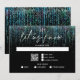 RSVP abstrait moderne - Une guirlande de sarcelle audacieuse et scintillante cascade vers le bas de la page, avec une calligraphie manuscrite "faites-le nous savoir" - les initiales du couple en haut - le reste du texte est simple et épuré - le tout sur fond noir. Papeterie de mariage élégante.