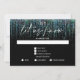 Choix de repas Abstrait moderne RSVP - Garland turquoise émaillé cascades en bas de la page, en calligraphie manuscrite est "laissez-nous savoir" - initiales du couple en haut - le reste du texte est simple et propre - le tout sur un arrière - plan noir. Élégante papeterie de mariage.