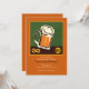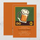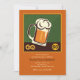 Cette chope de bière avec une tête mousseuse et une invitation sur les côtés en forme de bretzel comporte un médaillon rond pour un numéro, des initiales ou tout ce que votre imagination peut inventer. Il est encadré et monté sur un fond orange brûlé qui contient votre texte. (FP)