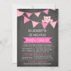 Commencez votre contemporain C'est jumeaux fille baby shower de droite avec notre chouette de tableau moderne avec invitation baby shower de bunting rose. Notre invitation à la douche élégante et branchée comprend un pennant à lapin rose avec un hibou rose et un bébé chevrotines roses pour un baby shower pour les filles jumelles. Retournez l'invitation pour trouver un tableau de bord populaire correspondant pour une touche spéciale supplémentaire.