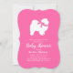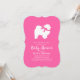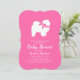 Inclure le grand frère ou la soeur en fourrure bébé dans la célébration avec cet adorable design de baby shower Chow Chow ! Parfait pour un amoureux du chiot avec un bébé en route. Le Chow Chow est à côté d'une adorable calèche vintage. Le rose en fait un endroit parfait pour une petite fille en route !