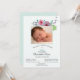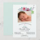 Un groupe de fleurs douces roses et vertes encadre la photo de votre bébé. Embellie d'une petite croix.