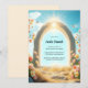 Célébrez la joie de Pâques avec cette invitation de brunch de Pâques religieuse époustouflante. Avec de douces fleurs printanières et un ciel bleu serein avec des colombes volant au-dessus, ce design symbolise magnifiquement le renouveau et l'espoir. Parfait pour un rassemblement de Pâques significatif avec la famille et les amis, cette invitation capture l'essence spirituelle de la fête.