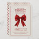 Invitation Christmas Holiday Dinner Party Red Satin Bow