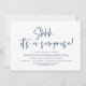 Shhh... c'est une fête d'anniversaire surprise Invitation card (thème bleu marine). Planifiez la fête d'anniversaire pour votre famille bien-aimée ? Invitation les invités avec cette carte d'invitation parfaite. Ajoutez vos détails dans la police noire correspondante / lettrage.