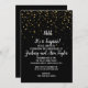 Cette invitation pour une fête d'anniversaire de mariage Chut ! C'est une surprise avec confettis dorés sur fond noir est parfaite pour une célébration élégante et surprise d'anniversaire de mariage. Le design présente de faux confettis dorés sur fond noir avec une calligraphie blanche élégante.