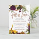 Une invitation moderne chic automne bébé garçon ou fille douche d'automne avec des fleurs d'orange bordeaux et rouillé, un grand citrouille d'aquarelle orange, feuillage séché, feuilles verts et une écriture manuscrite classe "tomber en amour" script de typographie. ++++++++++++++ Facile à personnaliser avec vos détails ! +++++++++++ Convient pour jardin extérieur à glam fleuri tendance automne ou fin été jardin élégant baby shower neutre genre ou sexe révéler des parties.