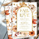 Invitation à la douche nuptiale rustique et élégante avec citrouilles blancs aquarelle peints à la main, feuilles et fleurs de chute avec libellé "chute en amour" doré, cadre d'arche en feuille d'or et motif floral de chute dans le dos. Contactez-nous par conversation si vous avez besoin de personnalisation ou de correspondances.