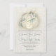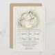 Chute d'amour, élégant citrouille blanc avec des vignes botaniques dorées de feuillage bleu vert et des lampes à cordes faire-part de mariage chic boho automne. Style rustique blanc lavé en bois de grange avec texte traditionnel et polices de style manuscrit. Papier Kraft imprimé brun à l'envers.