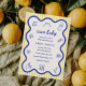 Ciao Baby - Invitation de Baby shower inspirée par l'Italie (bleu et jaune) Célébrez votre petit avec une touche de la dolce vita! L'invitation "Ciao Baby" est un design joliment dessiné à la main, inspiré par le charme intemporel de l'Italie, des rues bordées de citrons de la côte amalfitaine aux teintes bleues de la Méditerranée. Cette invitation à baby shower sans distinction de genre présente une palette de couleurs bleu et jaune éclatante, ce qui en fait un choix parfait pour honorer n'importe quel bébé. Avec des illustrations délicates d'agrumes, des motifs italiens classiques de tuiles et des textures d'aquarelle douce, chaque détail est conçu pour apporter la chaleur et la joie de l'Italie à votre célébration. Que ce soit pour une douche de jardin, un brunch inspiré de la citronnelle ou une soirée à thème avec des touches de branches d’olivier et de prothéce, cette invitation donne le ton parfait. Le design chic et élégant offre une façon unique et mémorable aux clients invitations de passer une journée spéciale, remplie de soleil, de rires et d'amour. Entièrement personnalisable avec les détails de votre événement et disponible en téléchargement numérique ou version imprimée, cette invitation est idéale pour les parents modernes qui veulent une première impression réfléchie, élégante et significative pour leur baby shower. Parfait pour des thèmes comme : Ciao Baby Italien Summer Little Lemon Méditerranéen Brunch dans la Côte d'Amalfi Laissez votre célébration commencer par le soleil - disons ciao bébé! de la plus belle façon possible.