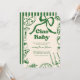 Say Ciao Baby! with this charming Italian-themed baby shower invitation designed in a trendy green colorway. Featuring whimsical hand-drawn pizza slices, playful food doodles, and a cute sketch style, this invitation is perfect for foodie parents, Italian café-inspired showers, or unique modern celebrations.