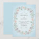 Un délicat halo de rose et de fleurs bleu pâle entoure doucement ce motif romantique. Un feuillage vert luxuriant s'entremêle aux fleurs, créant une atmosphère aérienne et éthérée parfaite pour une célébration douce. L'impression générale est celle d'une beauté douce et d'une élégance discrète.