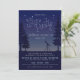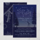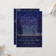 Des bleus profonds et riches mettent en valeur cette invitation de fête astucieuse, adaptée à une soirée d'observation des étoiles, une réunion d'astronomie ou une fête d'anniversaire à thème. Le recto présente une illustration du ciel nocturne juste après le crépuscule, lorsque les étoiles commencent à apparaître. Des pins ombragés et un télescope pointé vers le ciel complètent le design. Dans le ciel est placée une œuvre d'art représentant les mots "Star Party" composée de nombreuses petites étoiles scintillantes. Cette œuvre d'art est cependant amovible, si vous souhaitez la remplacer par un texte adapté à votre événement particulier. Tous les autres textes sont entièrement personnalisables à l'aide des modèles faciles fournis. Le verso est imprimé d'un bleu foncé et présente un motif global de diagrammes et d'illustrations d'astronomie anciens dans un bleu-gris doux. Vérifiez