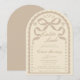 The arched silhouette is inspired by old-world Mexican architecture and vintage ceramic tile frames, while the scalloped border echoes the delicate cutout rhythm of papel picado banners. Soft cream and tan tones give the design a gentle, feminine feel, while the symmetrical floral accents and ornamental details reflect the elegance of traditional Talavera tile patterns. At the top, the hand-drawn ribbon bow adds a graceful coquette touch that keeps the design sweet, romantic, and perfect for honoring a baby girl or baby boy.