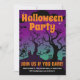 Un cimetière mauve hanté invitation de la fête d'Halloween. Il comporte un cimetière en aqua et violet avec des tombes, des arbres soyeux, une sorcière, une chouette, des chauves-souris et votre texte.