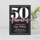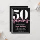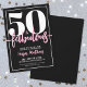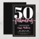 Voici une invitation de fête d'anniversaire "50 ans et fabuleuse" chic et élégante, parfaite pour célébrer ce cap avec style. Le design épuré présente un fond noir audacieux avec "50 ans et fabuleuse" bien visible en haut en caractères gras sérif et calligraphie élégants. Le texte de l'invitation combine des polices modernes et script en blanc et rose, créant un contraste amusant et sophistiqué sur le fond noir. Un cadre blanc propre autour du bord ajoute une touche d'élégance. Idéal pour une célébration d'anniversaire de 50 ans fabuleuse, avec des couleurs de fond, des polices et un cadre personnalisables pour correspondre à votre style. Invitation de fête d'anniversaire de 50 ans moderne, noir, rose, blanc, caractères gras, script, amusante et fabuleuse typographie.