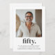 Marquez votre anniversaire de jalon avec sophistication en utilisant ce moderne modèle d'invitation 50e anniversaire pour hommes! Doté d'un espace personnalisable pour votre propre photo et du mot audacieux "cinquante", ce design élégant est parfait pour célébrer dans le style. Facile à personnaliser, cette invitation vous permet de créer une façon unique et mémorable d'annoncer votre prochaine fête. Donnez le ton pour une fête raffinée et inoubliable avec ce design contemporain !