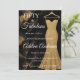 Cinquante ans et Incroyable texte minimal noir, or, blanc, marbre, paillettes moderne carte d'invitation pour 50e anniversaire que vous pouvez personnaliser et envoyer pour la célébration de votre cinquantième anniversaire. Les mots "Cinquante ans et Incroyable" sont posés sur un fond de marbre noir et or élégant, avec une typographie de police de caractères blanche populaire, placés à côté d'une robe de soirée élégante et sophistiquée dorée à paillettes et sans bretelles. Amusez-vous à personnaliser le nom, la date et l'heure, le lieu et le RSVP avec l'outil d'édition.