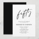 Cinquantième anniversaire Chic Écriture moderne Fête minimaliste Invitation... Notre invitation de cinquantième anniversaire noir et blanc élégante comporte un graphique d'écriture manuscrite moderne chic de "cinquante" au-dessus de votre texte d'invitation personnalisé. Le dos de l'invitation est noir élégant. Tout le texte (sauf le graphique de texte "cinquante") peut être facilement révisé avec vos propres détails sur le modèle de personnalisation.