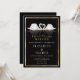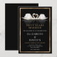 Beaux cygnes peints sur fond noir, blanc et or pour une invitation d'anniversaire de mariage dorée. Élégant et unique.