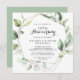Cette invitation d'anniversaire de mariage de 50 ans géométrique élégante en or est parfaite pour une célébration d'anniversaire simple. Le design présente des feuilles de eucalyptus vert botanique peintes à la main, ornant un cadre géométrique doré. Changez le nombre pour célébrer n'importe quel anniversaire de mariage.