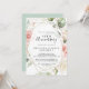 Cette invitation pour le 50e anniversaire de mariage géométrique vert or est parfaite pour une célébration rustique de l'anniversaire de mariage. Le design présente un feuillage vert et or peint à la main avec des fleurs roses, blush, blanches, ornant un cadre géométrique élégant.
