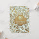 Jolie invitation de cinquantième anniversaire de mariage sur fond pastel mint aqua avec une superposition de feuilles dorées élégantes. Bannière dorée assortie sur le devant et le dos de la carte. Personnalisez le texte avant et arrière de l'invitation avec vos informations. Ce design est disponible sur d'autres articles dans ma boutique.