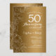 Invitation Cinquantième Anniversaire Fleurale Or Blanc