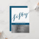 Invitation simple et moderne à l'occasion du 50e anniversaire d'un homme, avec une typographie élégante et un ton métallisé argent et bleu.
