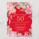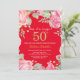 Cinquantième invitation d'anniversaire de surprise florale pour des femmes. Fleur florale botanique d'aquarelle. Parties scintillantes d'or. Fleurs florales de pivoines roses. Anniversaire adulte. Arrière - plan rouge. Pour davantage de personnalisation, cliquez sur svp la "personnaliser il" bouton et utilisez notre outil de conception pour modifier ce modèle.