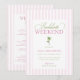 Organisez le week-end dans un style de destination sans effort avec cette invitation de week-end de bachelorette rétro avec itinéraire, conçue dans une palette de rose et de vert doux avec un motif de palmier classique inspiré des clubs de plage de Palm Beach. La mise en page épurée permet de décrire facilement les événements, les heures et les lieux tout en conservant un look soigné et prêt pour le resort. Parfait pour les week-ends de bachelorette de destination, les escapades côtières et les voyages de groupe ensoleillés où le style et la coordination vont de pair.