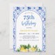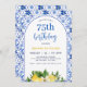 Arc jaune bleu Lemon Invitation Anniversaire Majoritairement bleu et blanc carreaux méditerranéens et citron invitation également avec une arche.