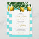 Bellisimo Levez votre journée de mariage spéciale avec cet élégant citron botanique bleu et blanc et or d'inspiration italienne, Faire-part de mariage rayé. Un design très élégant. Une invitation sur mesure avec vos informations est facilement saisie sur le modèle. Le design intemporel de citrons ensoleillés et de rayures bleues évoque une ambiance estivale à votre journée spéciale. Faites de ce design exclusif le vôtre.