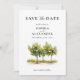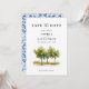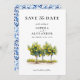 Annoncez votre journée spéciale avec cette élégante carte Save the Date! Le design présente une belle aquarelle illustrant les citronniers à l'avant, capturant le charme de la Méditerranée. Le dos présente une motif italienne bleue classique. Parfait pour un mariage d'été ou de destination !