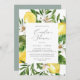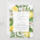 Cette invitation moderne à la douche en couple de jardin de citron est parfaite pour un wedding shower de printemps ou d'été. Le design méditerranéen rustique présente de beaux citrons aquarellés aux fleurs blanches bohème et d'élégants feuilles verts.