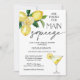 Lemon Yellow She Found Main Squeeze Bridal Shower Invitation Cette invitation à la douche nuptiale à thème citron comprend un arrangement en tranches de citron et de citron et un cocktail de martini à goutte de citron. Elle y trouve son invitation principale à prendre une douche nuptiale avec un mot de calligraphie moderne.