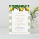 Bellisimo Élevez votre journée de mariage spéciale avec cet élégant sauge vert et blanc et or couleur italienne citrons botaniques, Faire-part de mariage rayé. Un design très élégant. Une invitation sur mesure où vos informations sont facilement saisies sur le modèle. Le design intemporel de citrons ensoleillés et de sauge greenstripe invoque une ambiance estivale à votre journée spéciale. Faites de ce design exclusif le vôtre.