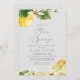 Cette invitation à la douche nuptiale moderne gris citron est parfaite pour un wedding shower de printemps ou d'été. Le design méditerranéen rustique présente de beaux citrons aquarellés aux fleurs blanches bohème et d'élégants feuilles verts.
