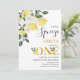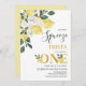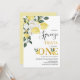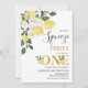 Citron Notre légèreté principale Première invitation Anniversaire Sweet notre pressoir principal tourne une invitation d'anniversaire avec un grand arrangement floral blanc et citrons sur le coin supérieur du design. Cette fille est notre principale invitation à l'anniversaire de première année présente également un faux or et un texte de calligraphie moderne modifiable.
