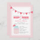 Une invitation à la gorgée et à la vue avec du bunting rose en haut et une illustration d'un pot de mason de limonade rose en bas à gauche. arrière - plan inspiré par la dentelle avec bordure rose. Personnalisez le texte avec vos informations.