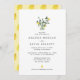 Une aquarelle simple et élégante citrons citrus verdure dans un arrangement de jarre faire-part de mariage avec police classique ci-dessous. Sur le dos de l'invitation est motif citron aquarelle.