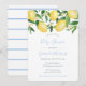 Lâche moderne citrons d'aquarelle et feuilles vert brillant avec un fin revers rayé pour ce design invitation baby shower élégant.