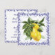 Cette charmante invitation personnalisable présente un magnifique design de style européen avec de succulents citrons mûrs entourés d'une bordure en toile de filigrane bleu marine royal. Un bouquet vibrant de citrons est niché dans une branche aux généreuses feuilles vertes, créant une atmosphère élégante et rafraîchissante. Personnalisez le verso pour n'importe quelle fête ou rassemblement - parfait pour les célébrations sur le thème du citron comme les douches nuptiales, les anniversaires ou les fêtes de jardin. Une touche fraîche et charmante pour votre événement spécial !