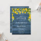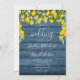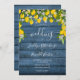 Avec des citrons, des fleurs et de la verdure sur un arrière - plan de bois rustique bleu, cette élégante invitation de mariage peut être personnalisée avec vos informations spéciales événement. Conçu par Thisisnotme©